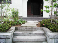 家の敷地が道路よりも高い場合はアプローチに階段を設けます。アプローチの階段は毎日頻繁に使うので使いやすい配慮が必要です。上り下りを楽にするために勾配をできるだけ緩やかにして、夜でも階段につまずかないように階段の踏み面と角の素材を変えて安全面に配慮します。